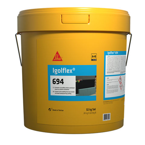 Sika® Igolflex®-694, çimento ve modifiye bitüm emülsiyonu esaslı, iki bileşenli, mala kıvamında, yüksek dayanıklılığa sahip su yalıtım kaplamasıdır.